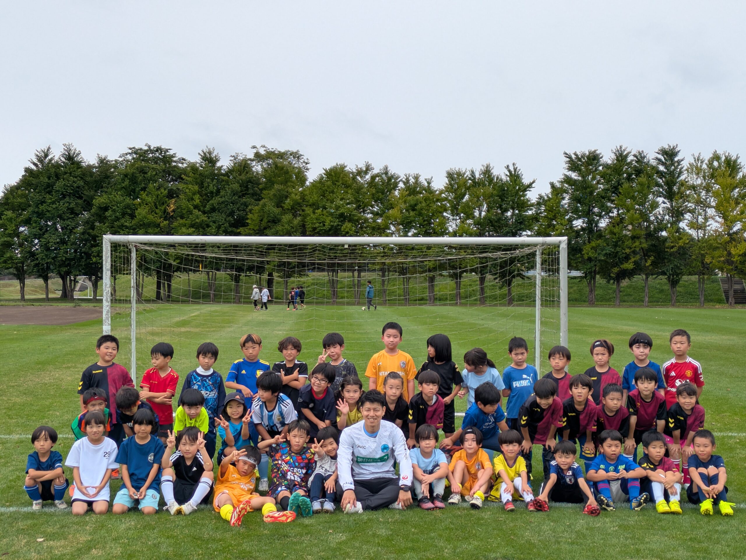 U-8サッカー教室では現役プロフットサル選手でFリーグでは歴代最多出場記録を持つ鉄人こと、エスポラーダ北海道 水上 玄太選手に来ていただき大変盛りあがりました。プロ選手との交流は子ども達にとって最高の経験になってくれることと思います。
