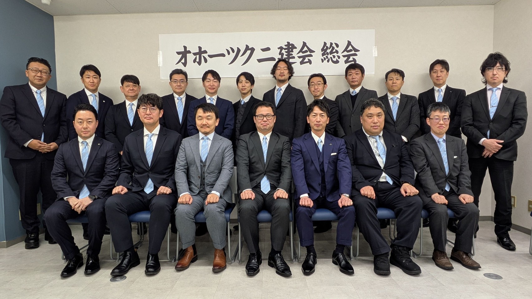 先輩たちが40年以上紡がれてきた、地域の建設業界にとって親睦と研鑽の要となっているオホーツク二建会の新体制を丸田 新会長を筆頭に守りながら、新たな時代を切り開いていきます。